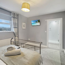 This newly renovated two-bedroom, second-floor flat in Grantham comfortably sleeps up to six guests. The bright and welcoming living room features two cosy two-seater sofas, perfect for relaxing after a day out. The fully equipped kitchen includes a fridge, freezer, washing machine and dishwasher, along with a dining area seating four.