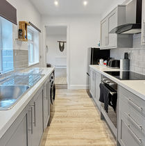 The house has been fully updated with modern amenities, super-fast Wi-Fi, smart TVs throughout, and a brand-new kitchen, bathroom, and appliances. The kitchen is well-equipped, with a washing machine, clothes airer, electric hob, fridge-freezer, and fan oven. It also includes all the necessary cookware and utensils, such as Pyrex dishes, baking trays, and enough cutlery and glassware for up to 6 guests (including wine glasses and tumblers).